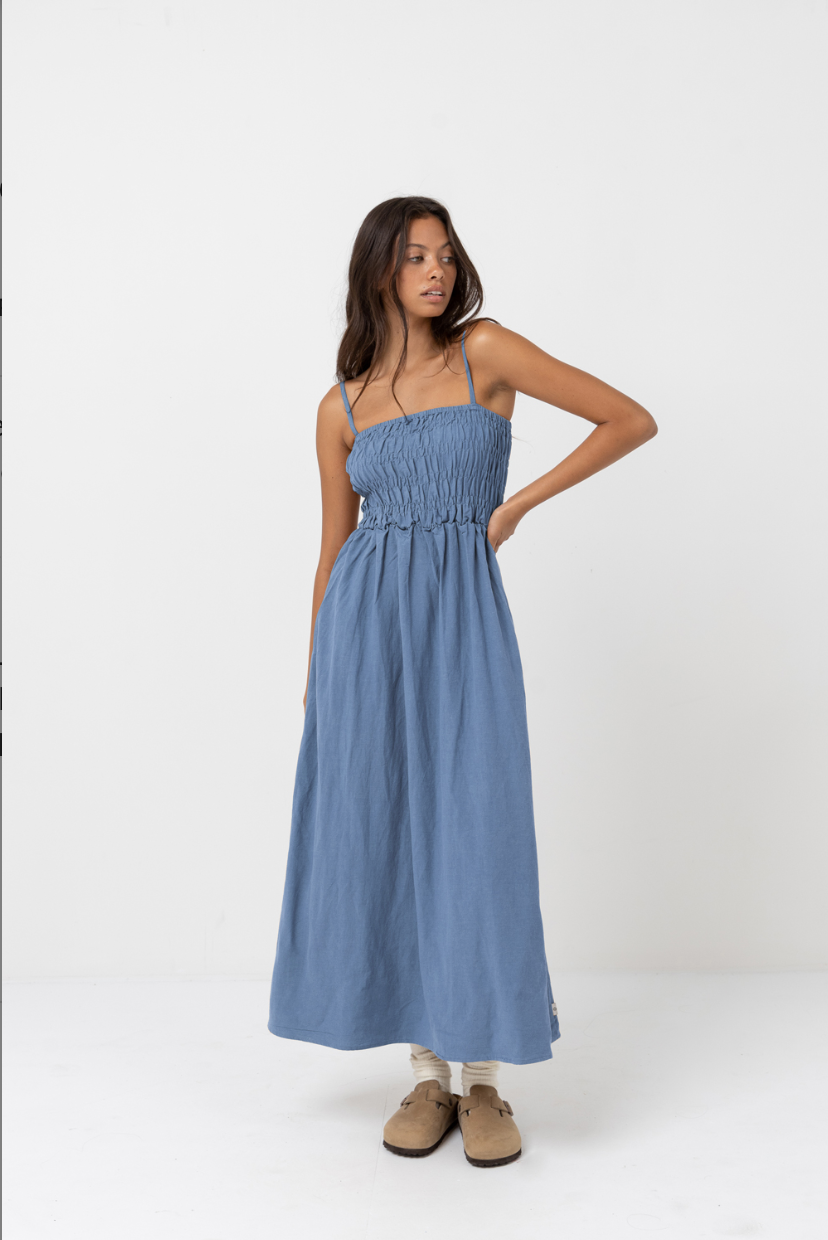 Made for breezy summer days and effortless everyday wearing, the Classic Shirred Midi Dress features a smocked front and back bodice, straight neckline and adjustable straps a season essential.