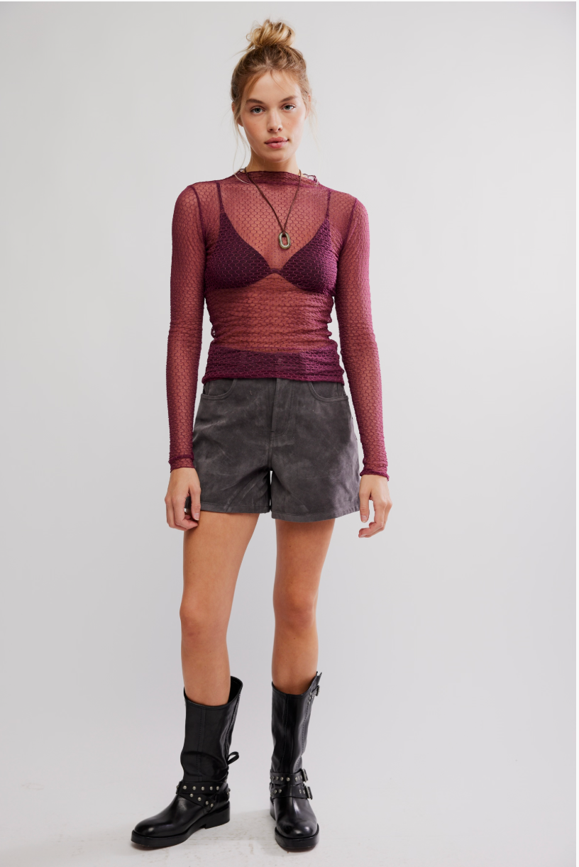 Add the perfect layer to every look with this effortless long-sleeved top featured in a sheer, textured fabrication, ideal to style over anything from a tank to a barely-there bralette.