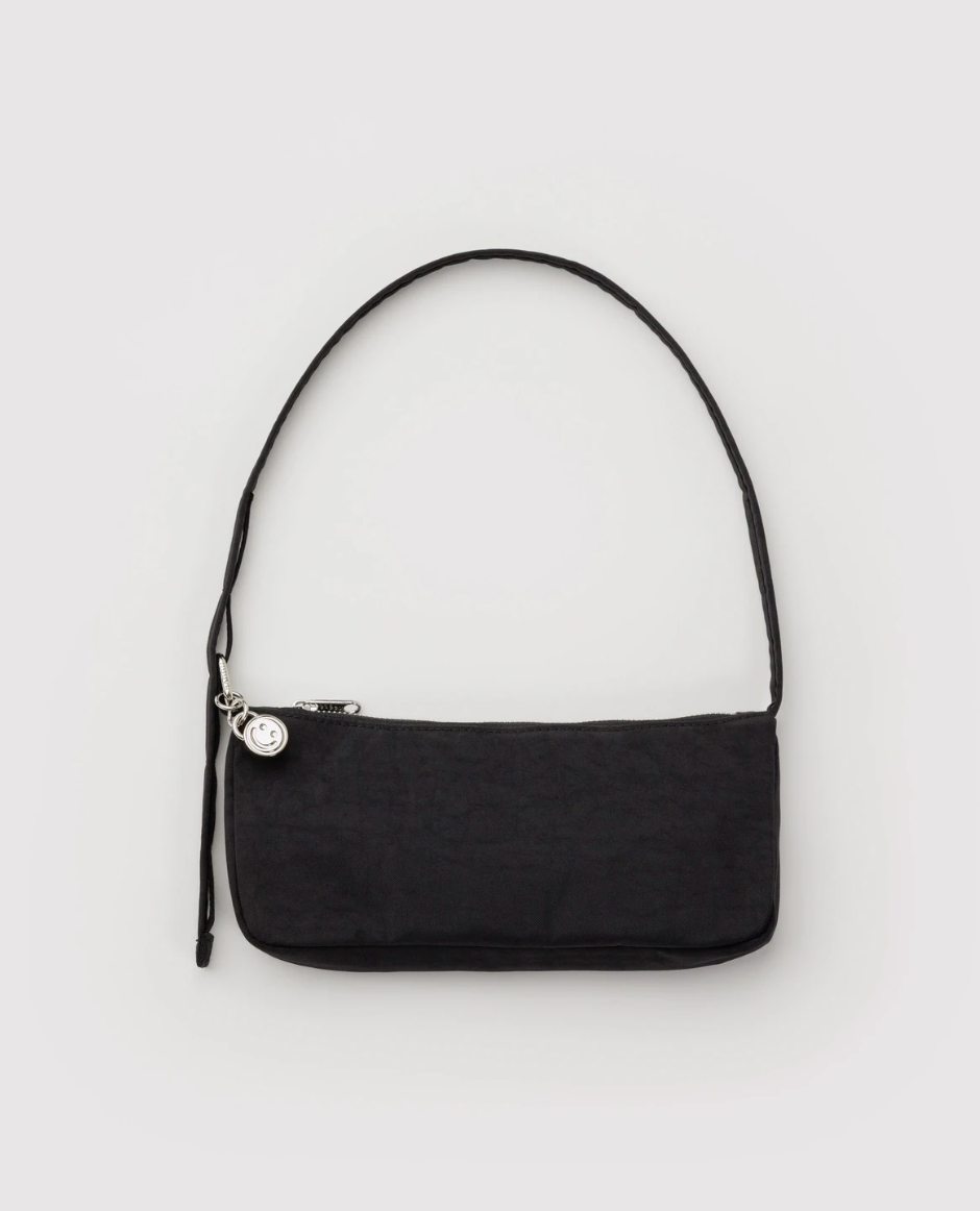A sleek, compact bag featuring built-in card slots for organization, metal charm, and adjustable strap.