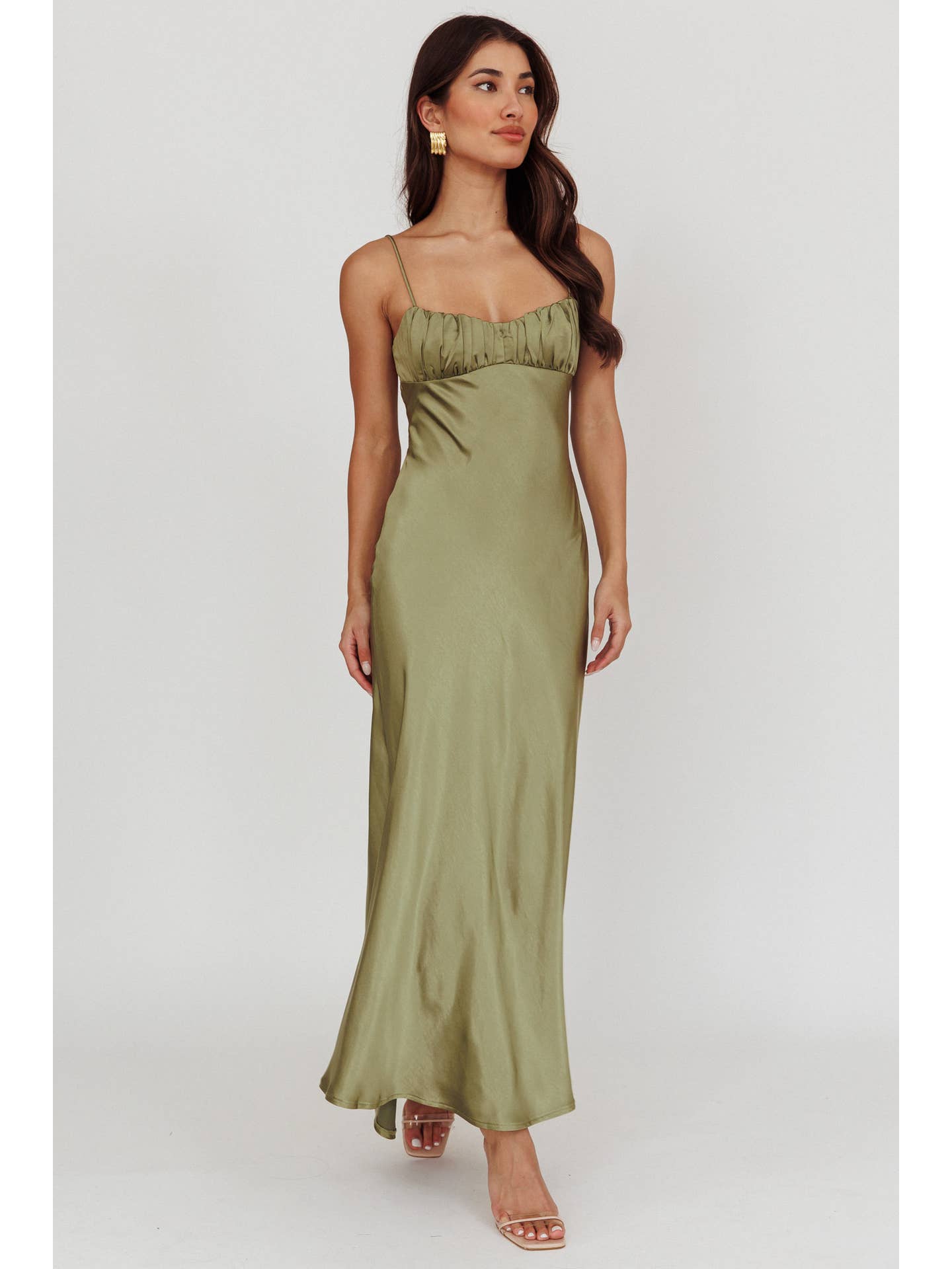 Satin Ruched Maxi Dress